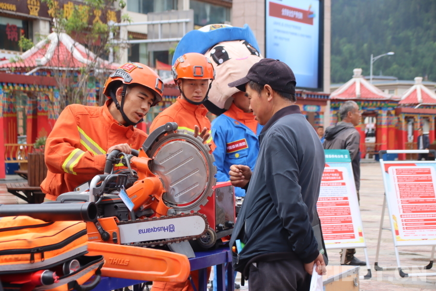 現場設置了政策法規、安全知識宣傳區、救援設備展示區、警示教育展板區、有獎互動等多項活動區域。活動期間,中隊指戰員通過發放防災減災宣傳資料、講解安全生產常識的形式向來往群眾宣傳普及森林火災、洪澇、山體滑坡、地震等自然災害逃生自救互救基本知識和技能。同時,在現場展示各種救援裝備器材的用途和操作方法,耐心解答群眾提出的各種問題。