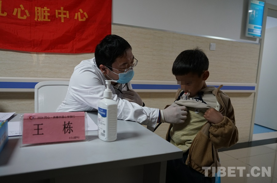 圖為北京安貞醫院小兒心臟中心副主任醫師王棟為兒童義診 攝影:周晴晴