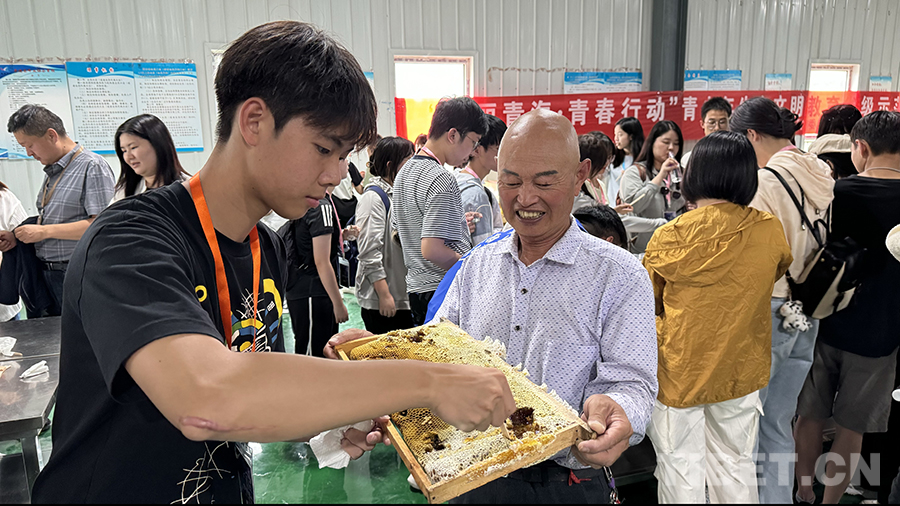 來自香港仁濟醫(yī)院第二中學的朱紫賢平時喜歡在食物中加入蜜糖,“但直到今天,我才對于蜜蜂采蜜有了進一步的認識?!彼朔藢γ鄯涞目謶?,近距離觀察到蜜蜂有條不紊的工作,也初步了解了蜂蜜的品質會隨著海拔高度的增加而提升,以及蜂蜜的味道會因蜜源地域或鮮花季節(jié)的不同而產(chǎn)生變化。“青海屬于高海拔地區(qū),我認為中華蜜蜂所采的蜜露營養(yǎng)價值很高很珍貴,很高興今天學到這些蜂文化知識。”