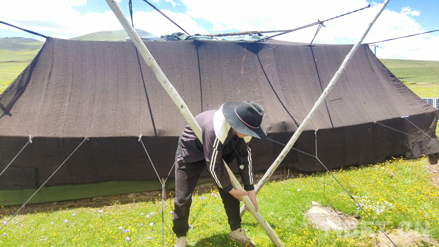 圖為阿察鎮阿察村牧民扎帳篷 攝影:澤村多吉