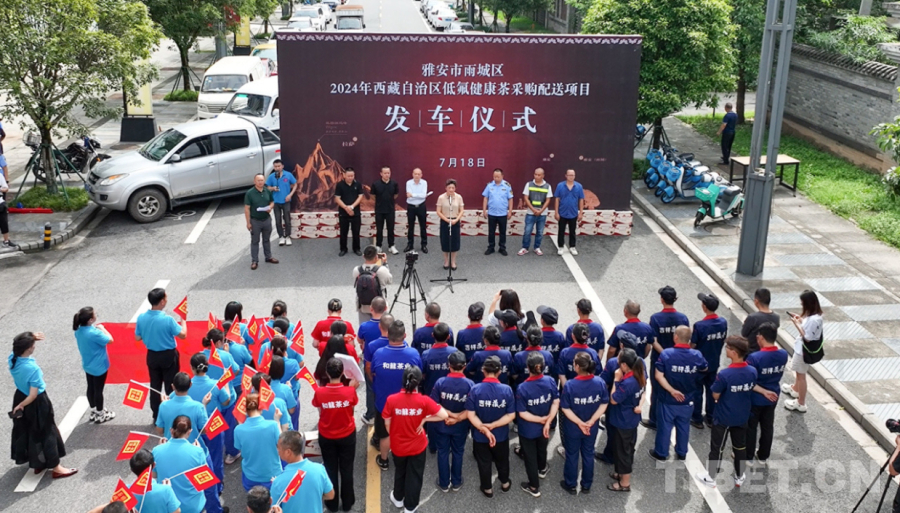 圖為2024年西藏自治區低氟健康茶采購配送項目發車儀式現場