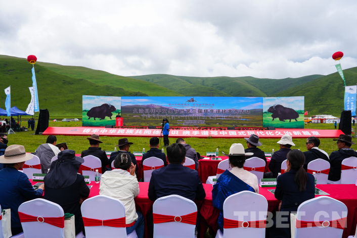 中國西藏網訊 7月19日,青海省果洛藏族自治州久治縣牦牛文化節暨第三屆牦牛評比大賽在久治縣黃河生態文化保護及旅游體驗區(智青松多鎮沙科村賽馬場)開幕。