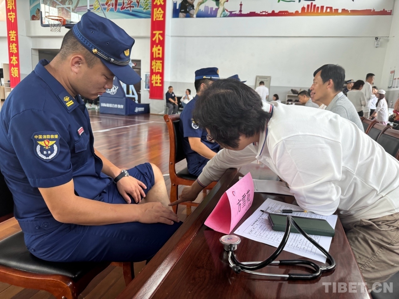 儀式結(jié)束后,志愿者們兵分兩路,一路為消防指戰(zhàn)員、武警官兵及退伍軍人開展義診,為他們送去溫暖與關(guān)懷;另一路參與到了消防科目演練中,進(jìn)行了防水、防火、防震等應(yīng)急救援相關(guān)技能培訓(xùn)。