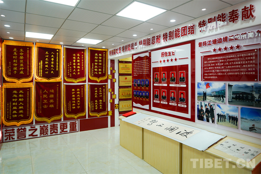 在普瑪江塘邊境派出所,“精神力量”永遠(yuǎn)比“榮譽之墻”更加重要。一面面錦旗掛滿了墻壁,卻將“榮譽之巔責(zé)更重,頂峰之處旗更紅”寫在錦旗之下;墻上的每一張照片都是一段不可抹去的記憶,卻將“特別能吃苦、特別能戰(zhàn)斗、特別能忍耐、特別能團結(jié)、特別能奉獻”的“老西藏精神”高懸照片之上。