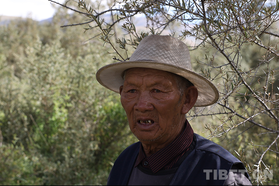 桑旦老人今年73歲了,是第一批在隆子河灘上種沙棘的人,從十幾歲的小姑娘,到如今已經步履蹣跚,桑旦始終心系沙棘林,她也被大家親切地稱為“沙棘奶奶”。如今,只要有時間,老人都會到沙棘林去看看。看到沙棘樹長得很好,老人很開心。