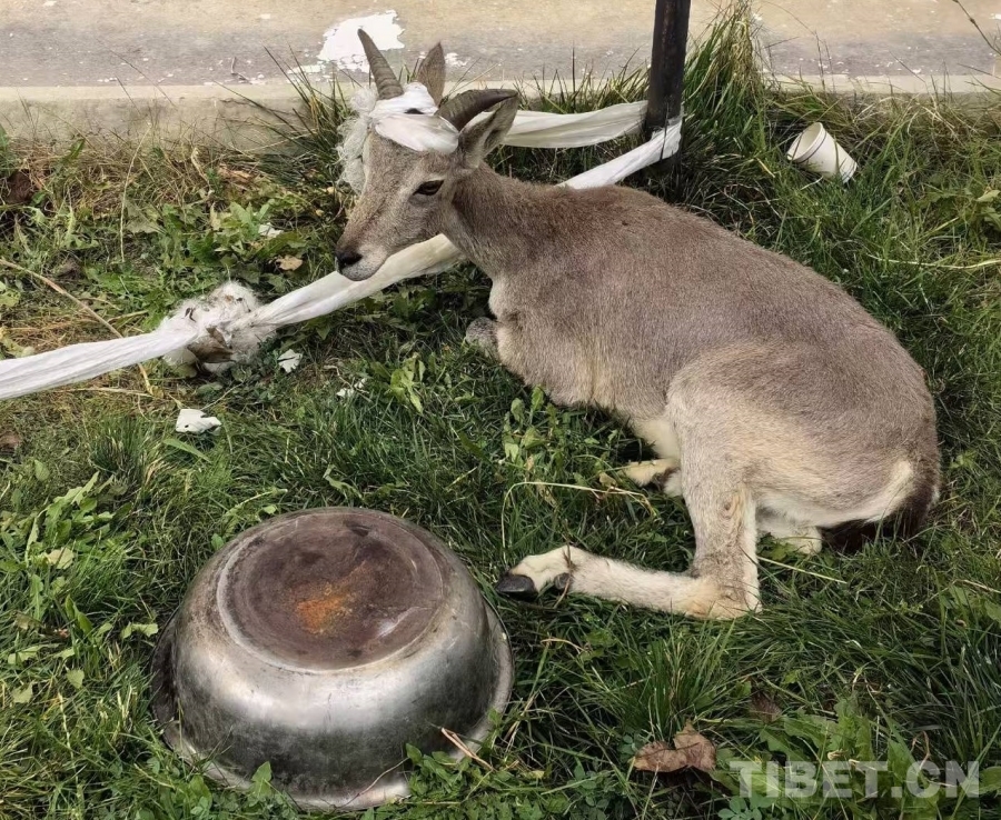 經聯系乃東區林草局工作人員到場辨認,該動物為國家二級重點保護野生動物巖羊。目前,巖羊已移交乃東區林草局進行專業救助。