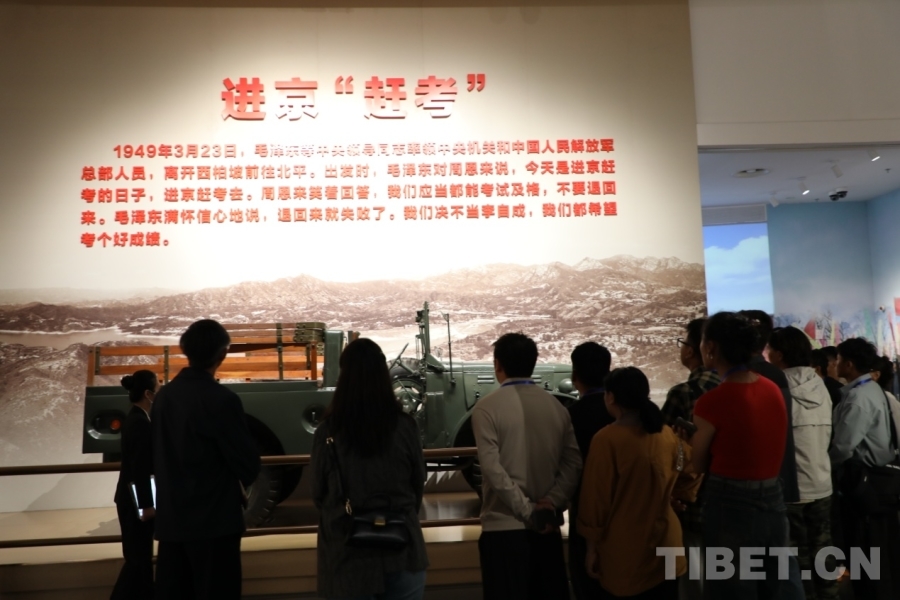 來自拉薩、日喀則、林芝、山南4市45名科技專干在講解員娓娓道來中想象當(dāng)時的歷史場景:1949年3月23日,離開西柏坡之際,毛澤東“對周恩來說:今天是進京的日子,進京趕考去。周笑答,我們應(yīng)當(dāng)都能考試及格,不要退回來。毛澤東說,退回來就失敗了。我們決不當(dāng)李自成,我們都希望考個好成績。”……