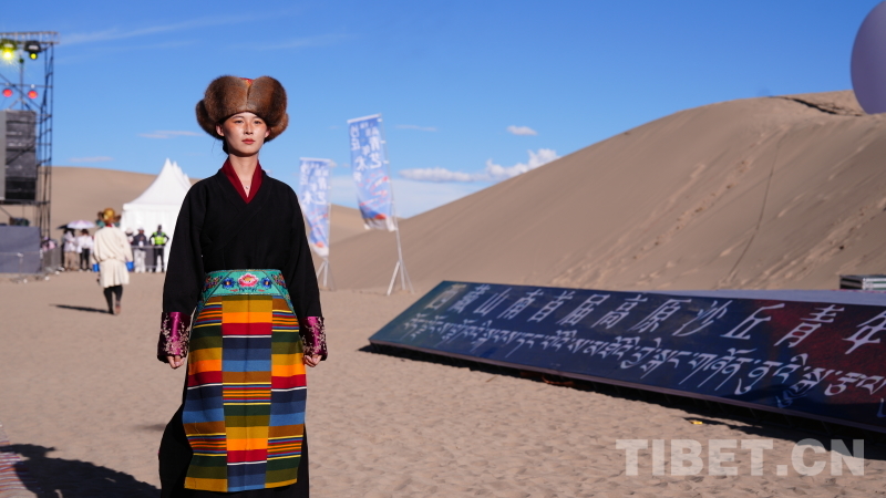 服裝大秀環節,措美縣“扎扎服飾”、浪卡子縣“羊卓服飾”、隆子縣“珞巴服飾”、錯那縣“門巴服飾”等山南各縣區代表性服飾,在沙漠的舞臺上綻放異彩,既保留了民族風情,又增添了青春與時尚的元素。模特們身著華服,在沙漠中穿梭,仿佛帶領觀眾穿越時空,感受了一場跨越千年的文化之旅。