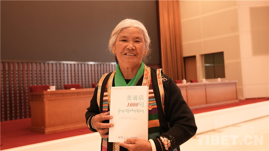新書發(fā)布會結(jié)束后,來自山南市乃東區(qū)昌珠鎮(zhèn)的群眾代表尼瑪曲珍對著藏文的譯音標(biāo)注念了幾句常用普通話,她說:“發(fā)布會上,我一直在翻看這本書,基本都是我們能夠在日常生活和工作中經(jīng)常用到的短句,藏文的譯音標(biāo)注更為我們普通話初學(xué)者提供了很大的便利,回頭我要好好學(xué)習(xí)這本書的內(nèi)容,也將把這書推薦給身邊想要學(xué)好普通話的農(nóng)牧民群眾。”