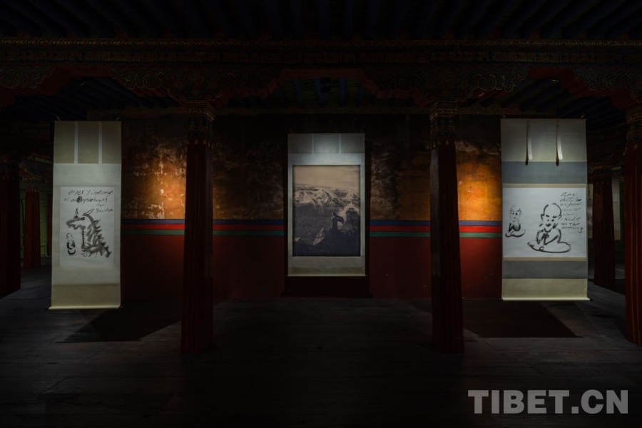中國西藏網訊 9月22日,當代藝術家徐震的首次西藏個展“全球包漿,山水靈光”在拉薩吉本崗藝術中心開展,展出其以全球化語境中的西藏為主題所創(chuàng)作的20余件全新水墨繪畫作品。(中國西藏網 記者/賈華加)