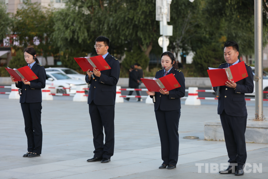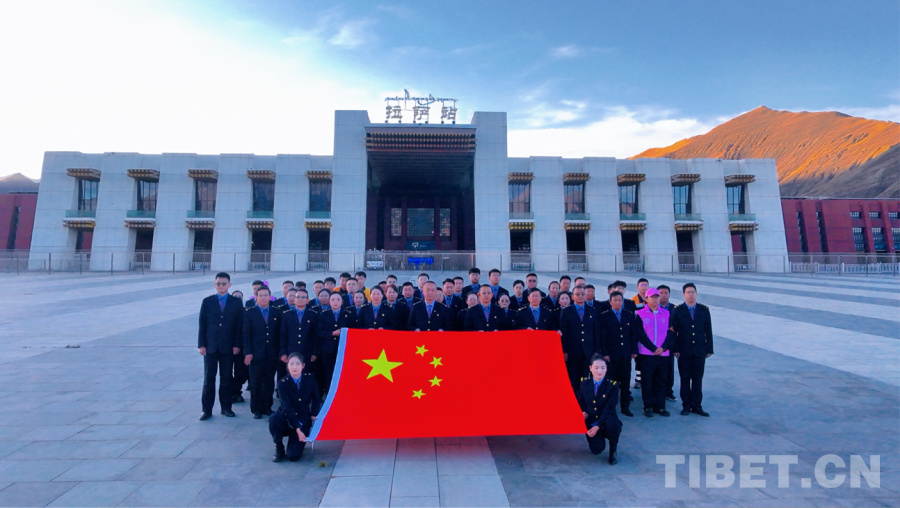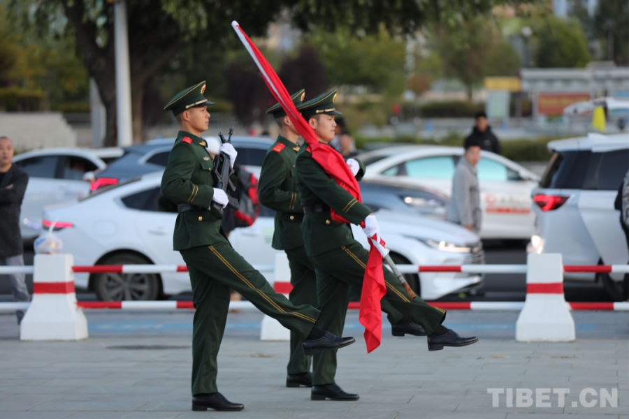 中國西藏網訊 在新中國成立75周年這一榮耀時刻,拉薩火車站舉行了一場莊嚴而隆重的升國旗儀式。10月1日上午8時整,雄渾的國歌聲奏響,駐站武警儀仗隊邁著整齊劃一的步伐,護衛著五星紅旗走向國旗基座。在火車站干部職工的凝視下,五星紅旗冉冉升起,那是祖國繁榮昌盛的象征。