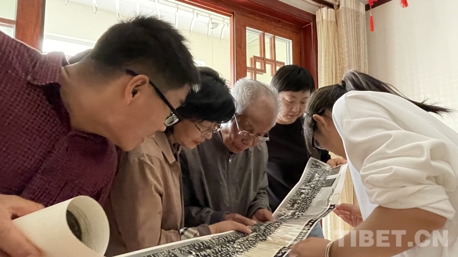 圖為2021年3月,李志農等《口述史》一書的作者與訪談對象朱蘭溪一同看老照片 供圖:李志農