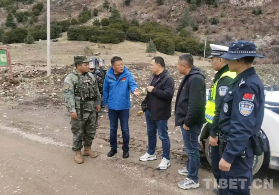 圖為馬奇華(藍色衣服者)在工作中 供圖:嘉黎縣應急管理局