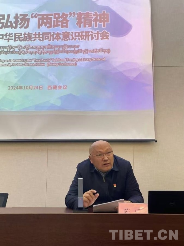 中國西藏網訊 10月24日下午,傳承弘揚“兩路”精神暨鑄牢中華民族共同體意識研討會在拉薩市西藏技師學院舉行。來自西藏自治區黨委黨校、自治區黨委網信辦、西藏社會科學院、西藏美術館、西藏大學、拉薩市委黨校、林芝市波密縣委宣傳部、西藏珠穆朗瑪律師事務所、青海民族大學、川藏公路博物館,那曲、林芝公路事業發展和應急保障中心、西藏錕鏵農業發展有限公司等單位的專家學者、業界人士及一線筑路養路代表們相聚一堂,共同回顧青藏高原的交通變遷歷程、講述自己與川藏、青藏公路的故事,探討“兩路”精神的時代價值,深入交流、碰撞思想、匯聚共識。