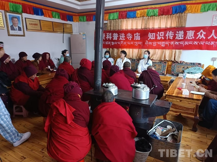中國西藏網訊 10月26日,同心·共鑄中國心公益活動義診專家組選派三名女專家走進四川省阿壩藏族羌族自治州紅原縣瓦切鎮如意空行寺,為覺姆義診并開展健康科普講座。