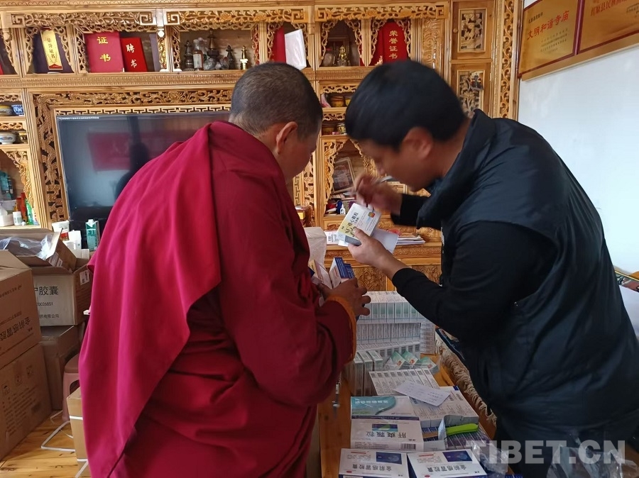 圖為工作人員照方為覺姆發放藥品并講解服用注意事項 攝影:賈春玲
