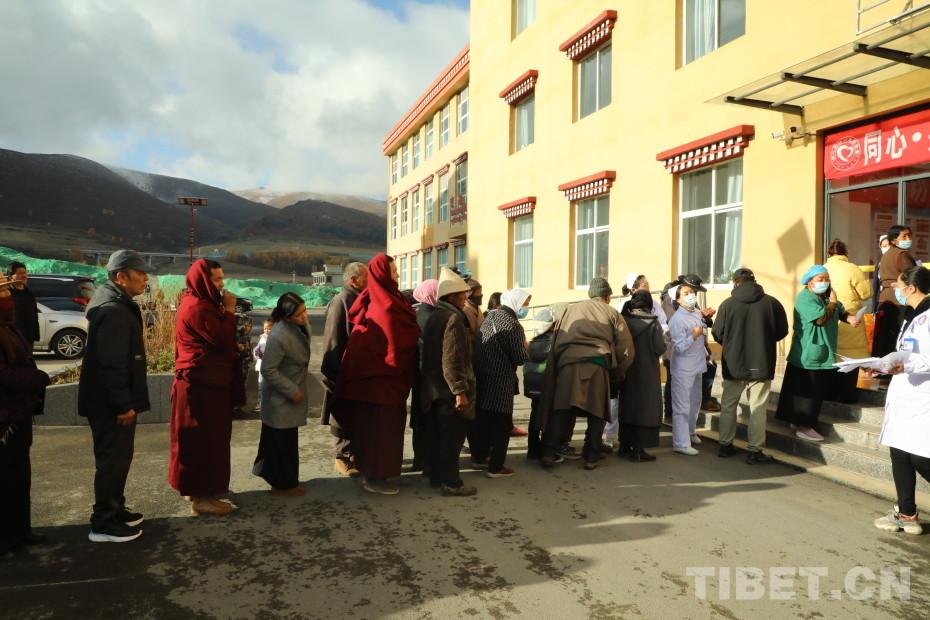 中國西藏網訊 四川阿壩藏族羌族自治州阿壩縣的群眾得知來自首都的醫療專家們將到縣醫院為他們免費看診,一大早就在縣醫院門口排起了長隊。當醫生們乘坐的大巴車駛入院內,人群變得更加擁擠。一位上了年紀的當地藏族老大爺說:“來自北京的曼巴(醫生)來了,這次一定得讓他們好好瞧瞧我的病。”
