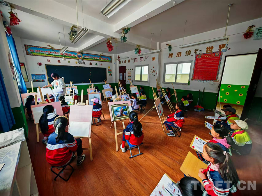 圖為洛隆縣俄西鄉第一小學的繪畫課