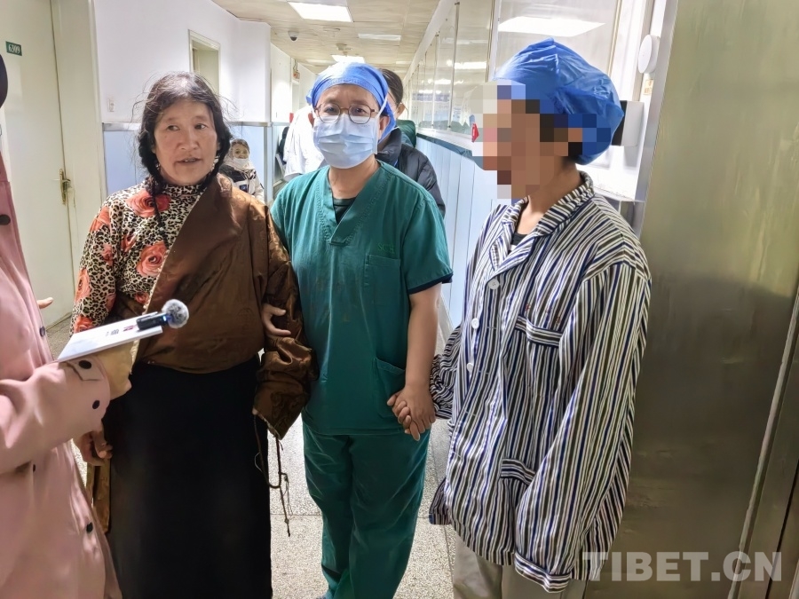 圖為手術剛剛結束后,卓瑪的媽媽與卓瑪和醫生交流 攝影:王帥