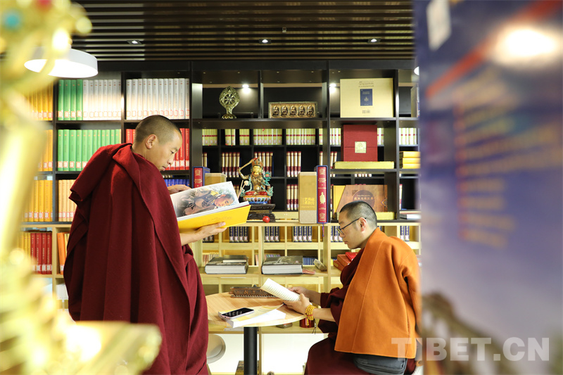 學員們在環境雅致、設施完善的中國藏語系高級佛學院圖書館里“打卡”。該圖書館擁有豐富的藏文文獻資源,為學員們提供了舒適的交流場所和學習環境。西藏佛學院的學員們也紛紛投入知識的海洋進行閱覽。