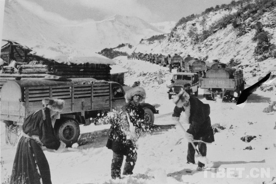 《109道班工人在風雪中鏟雪開路》 作者:唐召明