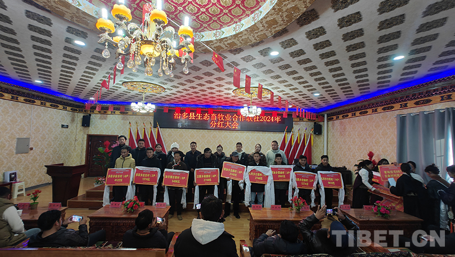 中國西藏網訊 12月26日,青海省玉樹藏族自治州治多縣生態畜牧業合作聯社(以下簡稱合作聯社)舉行了2024年分紅大會,為3401戶監測戶分紅60.594萬元,治多縣農牧和科技局、5鄉1鎮和20個行政村的負責人及入社股民代表參加。