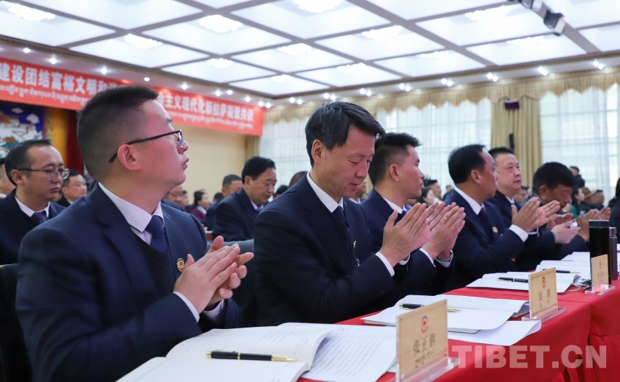 拉薩市政協主席江擁洛追代表政協第十二屆拉薩市委員會常務委員會向大會作工作報告。