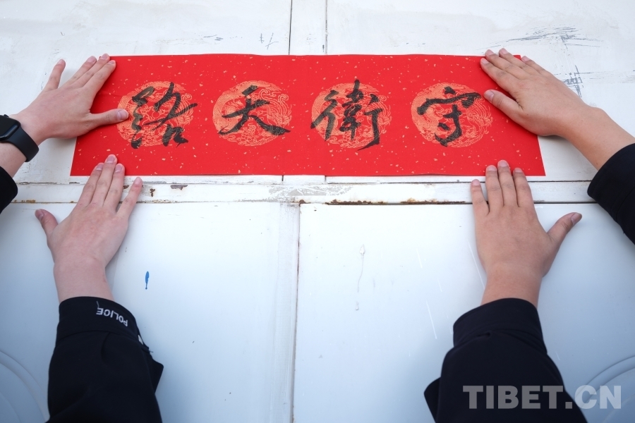 圖為駐站民警在新春來臨之際,用心寫下最美好的愿望“守衛天路”,用行動保衛鐵路運輸安全。攝影:賀瑞明