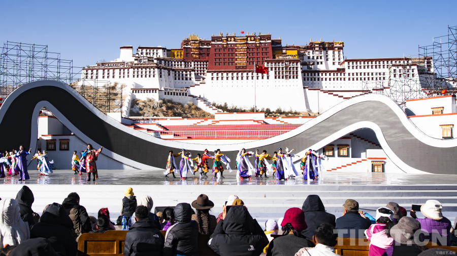 2月1日,農歷正月初四,布達拉宮廣場上的藏式沙發座無虛席,由西藏自治區文化和旅游廳、拉薩市委宣傳部、拉薩市文化和旅游局組織的惠民演出正在總臺春晚西藏拉薩分會場的舞臺上上演。居住在八廓街附近的小拉姆告訴記者,演出每天下午4點開始,但她跟著爺爺奶奶每天下午3點便早早出門來到這里占座。環顧觀眾席四周,游人早已將觀眾席包圍起來,紛紛拿出手機打卡拍照,記錄下的不僅僅是極具民族風情的演出節目,更是別具特殊意義的農歷春節。