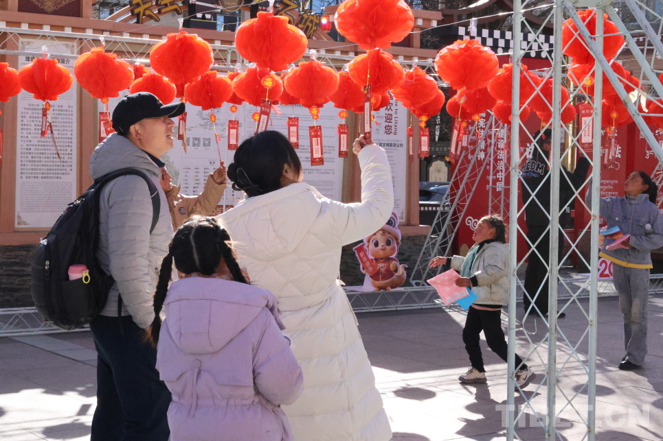 燈謎競猜區格外受歡迎,上百盞紅紅火火的燈籠上掛著福字和各色謎面,男女老少眾多猜謎者穿梭其間,不亦樂乎。