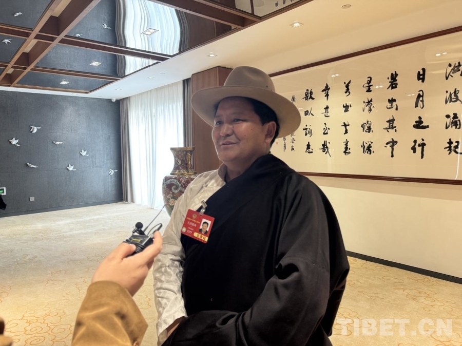 圖為兩會(huì)期間,扎西頓珠接受中國(guó)西藏網(wǎng)記者采訪