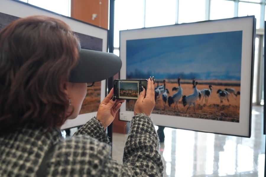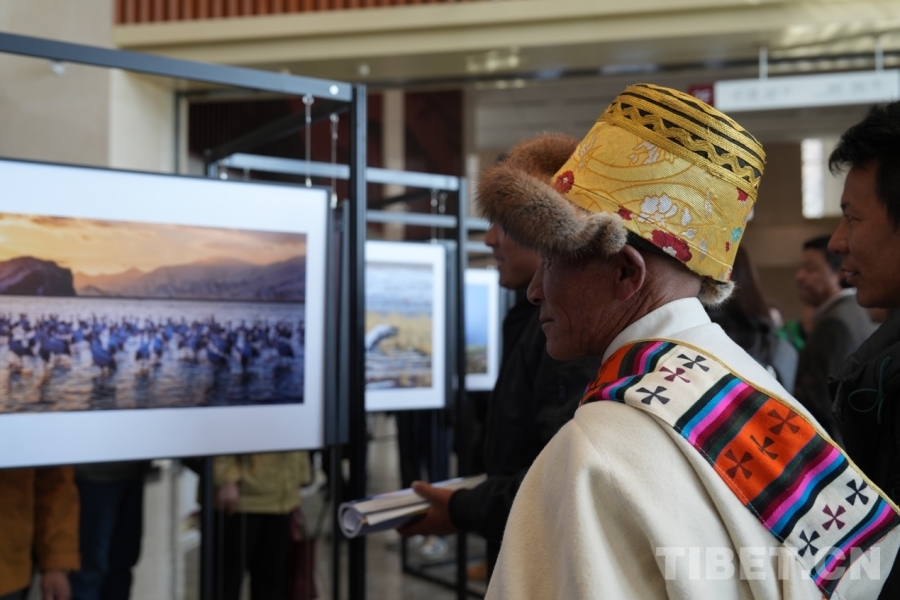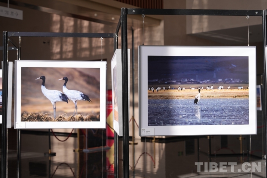開幕式后,嘉賓們參觀了攝影展,近距離欣賞黑頸鶴與雪山、湖泊、草原共生共榮的美好瞬間,感悟西藏生態與人文的和諧之美。(中國西藏網 記者/德吉卓瑪 旦曲)
