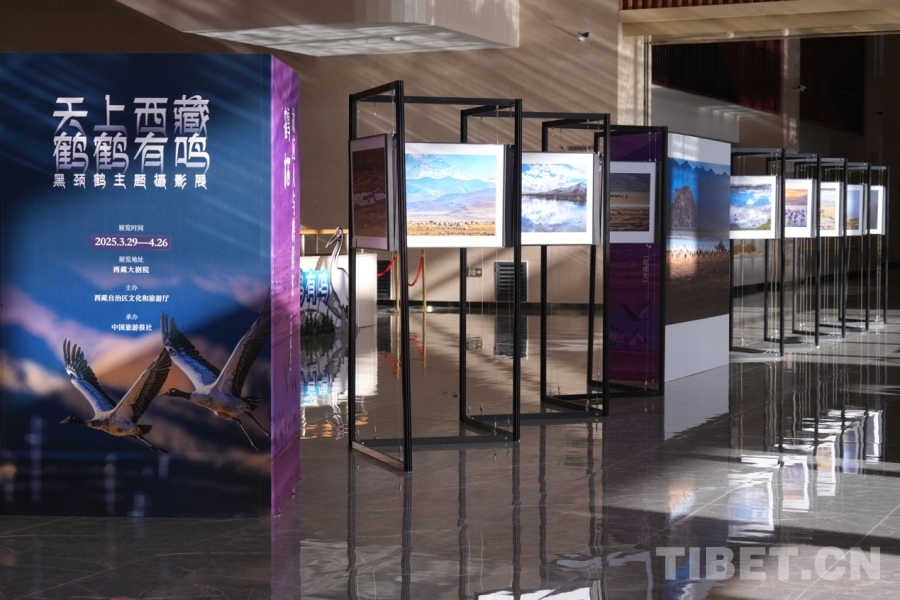 中國西藏網訊 3月29日,由西藏自治區文化和旅游廳主辦、中國旅游報社承辦的“天上西藏·鶴鶴有鳴”黑頸鶴主題攝影展在西藏大劇院開幕。