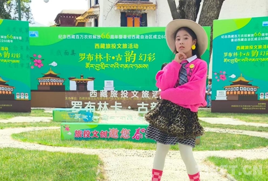 圖為3月30日在拉薩羅布林卡舉辦的“羅布林卡·古韻幻彩”活動中,塔耶梅朵少兒模特走秀表演 攝影:趙釗
