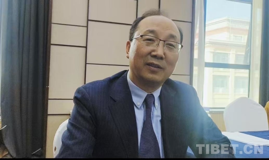圖為3月28日,中國藏學研究中心副總干事扎洛在《新時代西藏人權事業的發展與進步》白皮書新聞發布會現場接受中國西藏網采訪 攝影:趙釗