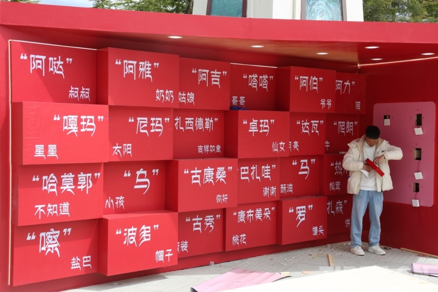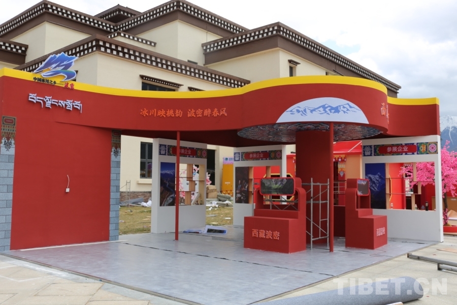 開幕式主會場經過近一周加班加點的搭建,已可見雛形,開幕式主會場舞臺以桃花花瓣形狀設計LED背景屏與舞臺,會場周邊也做了諸多氛圍設計,包括各縣區特色展房與展臺。