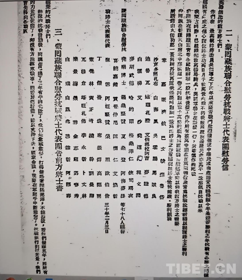 圖為《蒙回藏族聯合慰勞抗戰將士代表團告前方將士書》(喜饒尼瑪供圖)