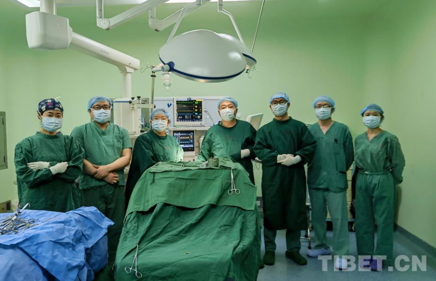 圖為火箭軍特色醫學中心口腔科主治醫師張曉然(左四)與阿壩州人民醫院口腔科團隊合作為腭裂患兒實施腭裂修補手術成功后,手術團隊在手術室合影
