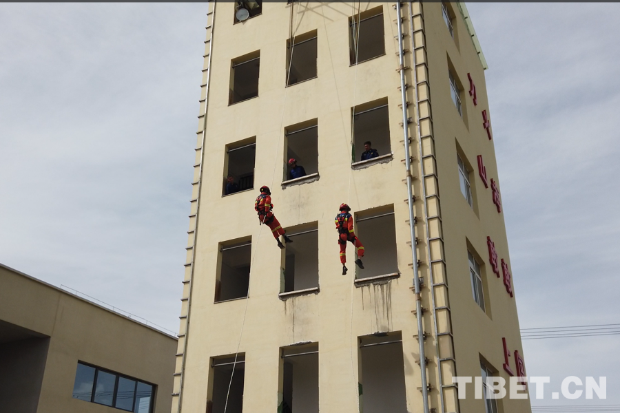 在海拔3500米的高原上,有的人初上高原連呼吸都困難,年輕的消防員們卻健步如飛,先后展示了繩索攀爬、?掛鉤梯上四樓、高空速降等訓練科目,其熟練程度、踏實的作風和展現出來的良好精神風貌,贏得醫務志愿者們的贊嘆和掌聲。