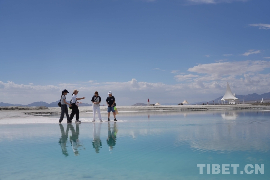 圖為香港青少年在察爾汗鹽湖合影 攝影:王茜