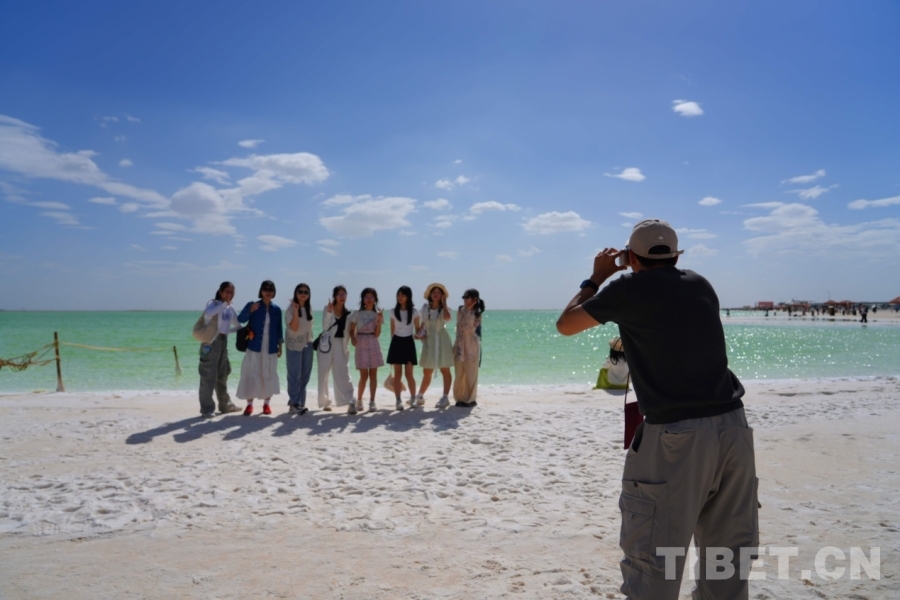 在海西蒙古族藏族自治州格爾木市,海拔2670米的察爾汗鹽湖,翠綠之美令人震撼,風起波動,湖面如碎鉆鋪就的星河;天然形成的鹽花形態各異宛如珊瑚叢生,在陽光下,閃耀著璀璨的光芒;浮在鹵水上的“萬丈鹽橋”延伸至天際,橫跨湖面,還有周邊的現代化采鹽船,輸鹵管道,車來車往,工業設施與自然景觀形成強烈對比。來自妙法寺劉金龍中學三位女生欣賞著美景,也紛紛討論這次令人驚嘆的“自然課堂”。鐘澄情同學不自禁感慨:“這里跟網上宣傳的一樣美!就像是上帝打翻的蘋果汁?!痹袂缤瑢W驚嘆道:“曾經我只聽說過茶卡鹽湖,來到這里才知道察爾汗鹽湖是中國最大、世界第二大的鹽湖,面積相當于56個茶卡鹽湖,鹽儲量可以讓全球80億人吃上兩千年。”而許馨月同學更加震撼這里工業與自然相互交融的獨特魅力,直呼這是一座真正的“寶庫”!