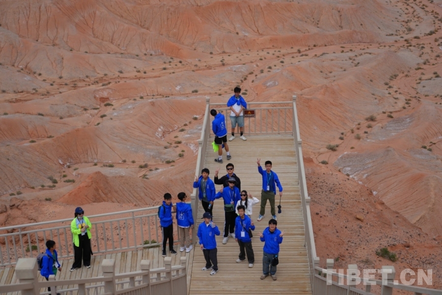 圖為香港青少年在海西蒙古族藏族自治州大柴旦紅崖火星地貌景觀區 攝影:王茜