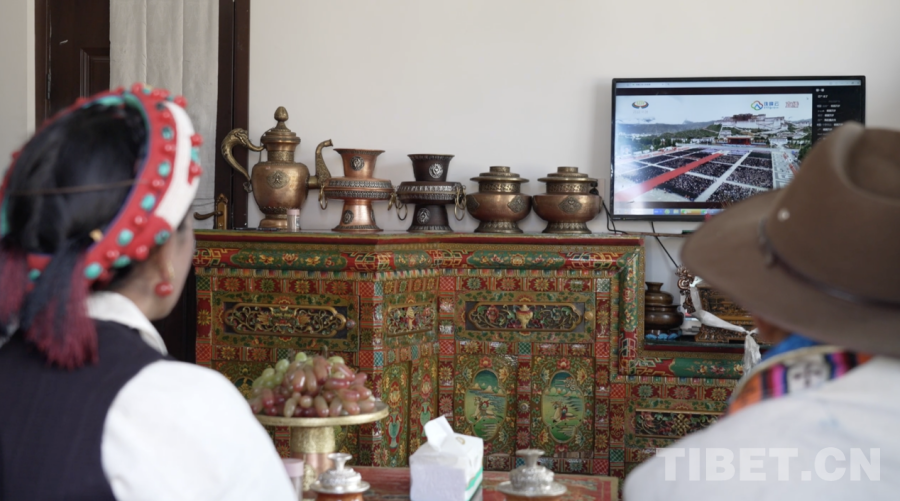 圖為嘎拉村村民觀看西藏自治區成立60周年慶祝大會 林芝市委宣傳部供圖