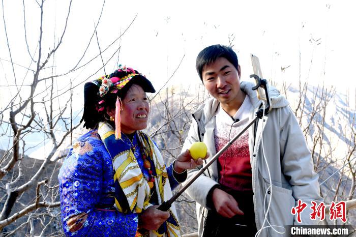 午飯后,張飛按約來到畢含珍家,幾位身著傳統(tǒng)藏袍的熱心鄰居正在院中幫忙裝箱蘋果。張飛先拍攝了一條短視頻,隨后又支起穩(wěn)定支架,將鏡頭對(duì)準(zhǔn)堆滿院落的蘋果,開始直播,最高峰時(shí)有5000人同時(shí)在線觀看。不到40分鐘,第一批裝箱的40箱蘋果便被網(wǎng)友一搶而空。