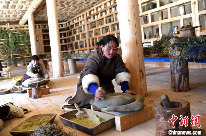 在藏香制作傳習所,藏族女孩麥莫正認真看著老師用開孔牦牛角擠制傳統藏香。“職高畢業后我原本可以當老師,但是我還是回到家鄉學習藏香,因為我喜歡家鄉的花?!丙溎榻B,藏香會用到高原杜鵑花、藏紅花、雪蓮花等幾十種鮮花、藥材,每到鮮花盛開的季節,都會有一兩百個女孩一同采集鮮花、藥材。最近大家還開發了藏香的衍生品香包、掛件等,即將在壤塘縣集中展示銷售非遺產品的“非遺超市”售賣。