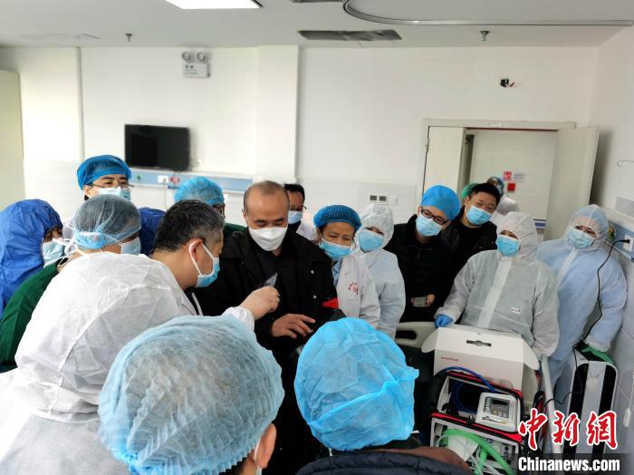 圖為青海醫療隊查看醫療物資。青海大學附屬醫院 攝