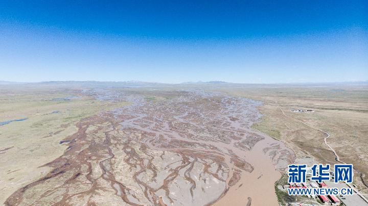 這是位于青海省格爾木市唐古拉山鎮的長江正源沱沱河河道(2019年8月9日無人機拍攝)。新華社記者 吳剛 攝