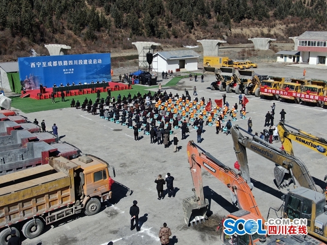 3月5日,西寧至成都鐵路四川段啟動建設(shè),在積雪覆蓋的川西高原,當?shù)厝罕姶┥厦褡宸b,載歌載舞,表達喜悅和歡欣。