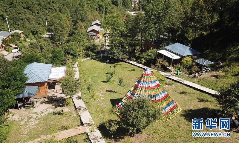 2019年8月14日無人機拍攝的甘南藏族自治州香告村一處“藏家樂”。新華社記者 陳斌 攝