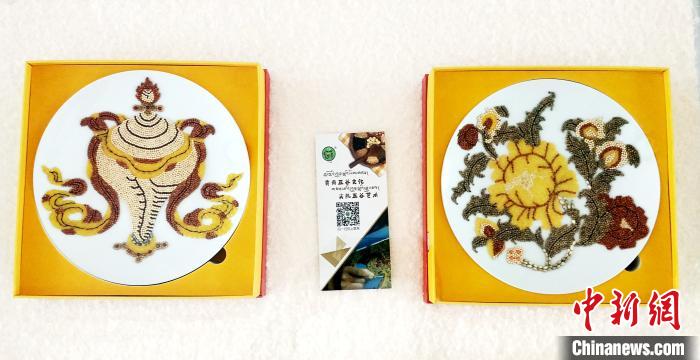 “在我們藏族地方習俗中,為了祈盼五谷豐登,不少人家都會用五谷拼湊出彩色圖案來供奉。像青稞、小麥、油菜籽等,通過巧妙構思,‘繪’制的圖案就是‘五谷畫’。”在翻譯的幫助下,索南本用藏語如是介紹自己來自高原的手藝。